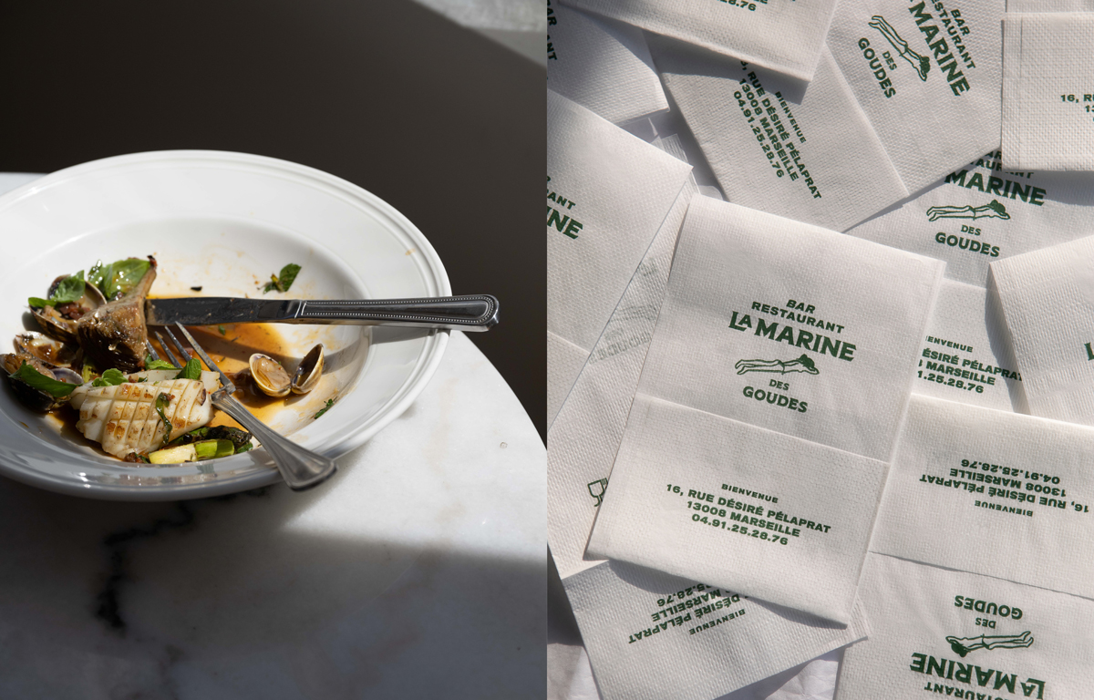 Très fières d’être associées à la dream team Marion Mailaender, Paul Langlère, Thibault Hillmeyer et l’agence Mews pour réinventer l’identité de La Marine des Goudes, notre restau préféré et le plus ancien de notre village de pêcheurs chéri. À deux pas de The Cabanons des Goudes…